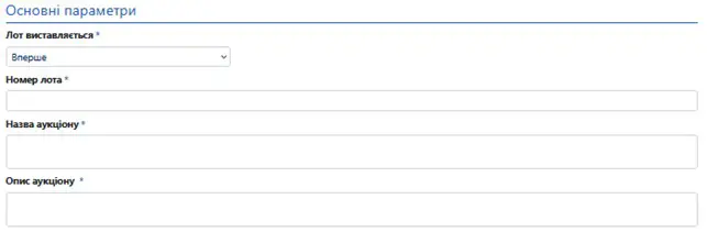- Номер лоту - Номер лоту обирає Організатор, мінімальна кількість символів три. Рекомендуємо присвоювати унікальні номери лоту, наприклад у форматі «код ЄДРПОУ замовника/порядковий номер лоту – 25158707/3»