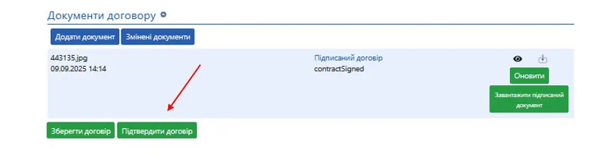 Після збереження необхідно підтвердити договір через відповідну кнопку.