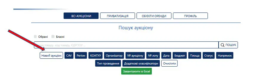 - Зайдіть у вкладку «Аукціони» та натисніть снопку «Новий аукціон»