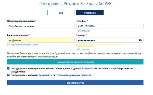 Для того щоб створювати аукціони з продажу майна згідно Регламенту потрібно зареєструватися на майданчику.