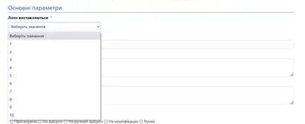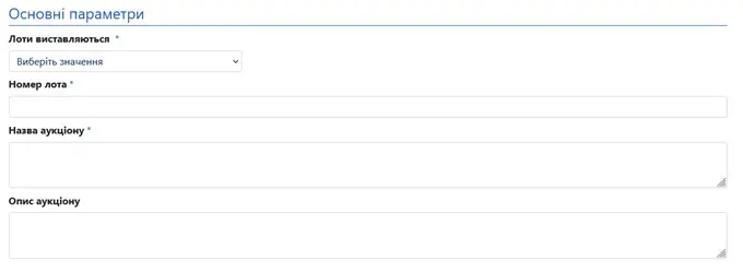 - Номер лоту - Номер лоту обирає Організатор, мінімальна кількість символів три. Рекомендуємо присвоювати унікальні номери лоту, наприклад у форматі «код ЄДРПОУ замовника/порядковий номер лоту – 25158707/3»