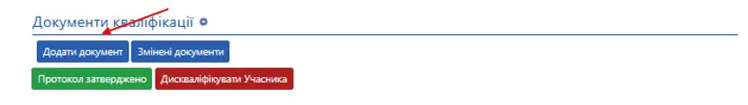 Для того щоб опублікувати підписаний протокол, на сторінці аукціону спустіться донизу в розділ Кваліфікація та натисніть кнопку «Додати документ».