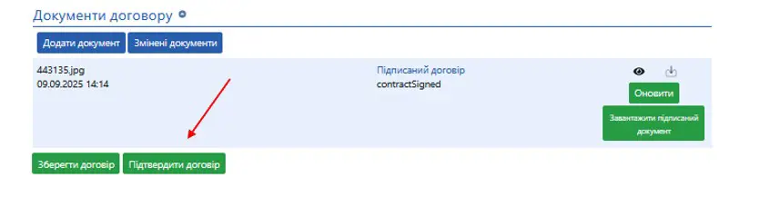 Після збереження необхідно підтвердити договір через відповідну кнопку.