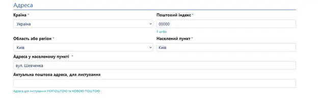 - Поштовий індекс – вказати поштовий індекс відділення, на обслуговуванні якого перебуває організатор