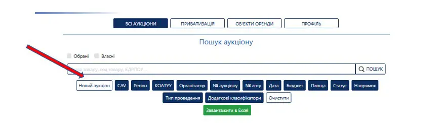 - Зайдіть у вкладку «Аукціони» та натисніть снопку «Новий аукціон»
