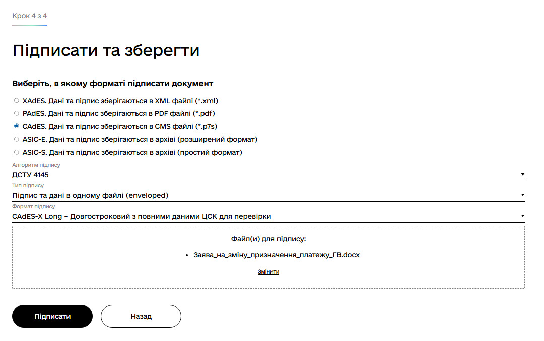 Крок 4. Підписання