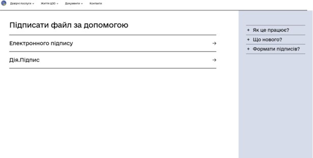 Для того, щоб підписати документи за допомогою файлового ключа (апаратного ключа) необхідно перейти на сайт https://czo.gov.ua/sign та зробити кілька кроків:
