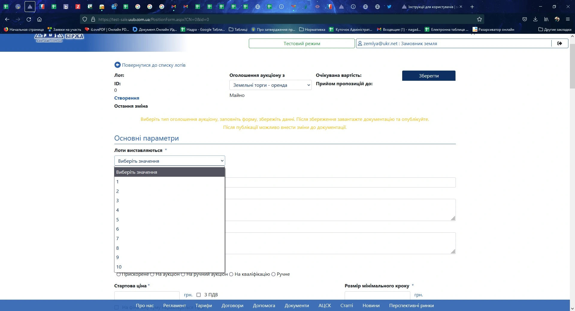 Для того щоб створювати аукціони з продажу арештованих земельних ділянок потрібно зареєструватися на майданчику.