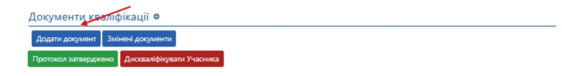 Для того щоб опублікувати підписаний протокол, на сторінці аукціону спустіться донизу в розділ Кваліфікація та натисніть кнопку «Додати документ».