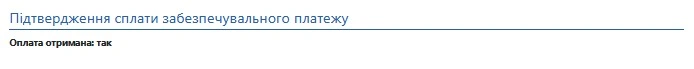 Після отримання оператором забезпечувального платежу, такий оператор має підтвердити факт надходження коштів у системі, шляхом натискання кнопки. У випадку підтвердження Ви отримаєте лист на електронну пошту, а в аукціоні відобразиться відповідна інформація.