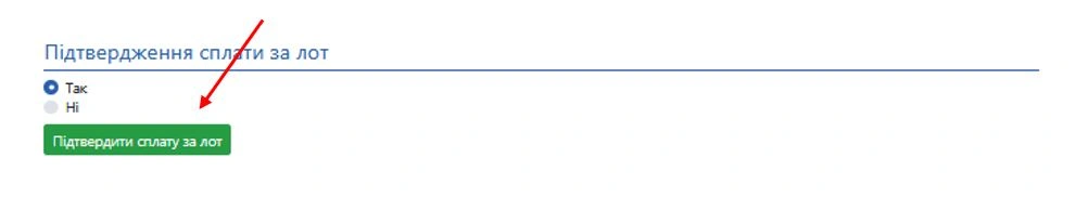 Після підтвердження договору з’явиться можливість підтвердити оплату за лот.