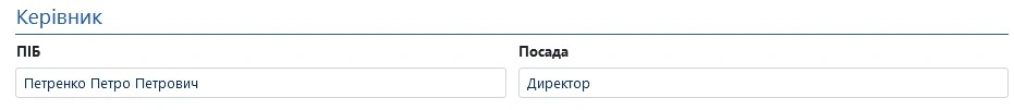 Далі потрібно заповнити інформацію про керівника із зазначенням посади: