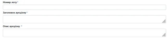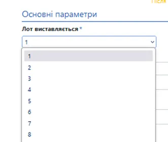 - Номер лоту - Номер лоту обирає Організатор, мінімальна кількість символів три. Рекомендуємо присвоювати унікальні номери лоту, наприклад у форматі «код ЄДРПОУ замовника/порядковий номер лоту – 25158707/3»