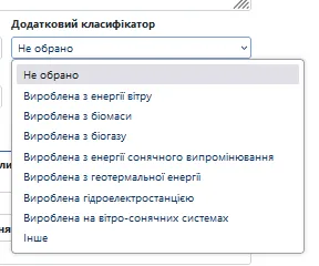 - Додатковий класифікатор – обирається організатором з випадаючого списку.