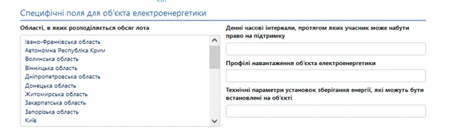 - Області, в яких розподіляється обсяг лота – обирається замовником зі списку.