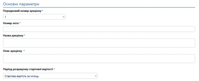 - Період розрахунку стартової вартості – з випадаючого списку оберіть за який період оренди вказана стартова ціна лота.