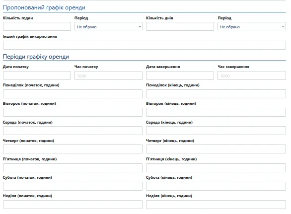 Блок заповнюється у випадку, якщо об’єкт пропонується в оренду за конкретним графіком або з визначеними періодами.