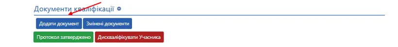 Для того щоб опублікувати підписаний протокол, на сторінці аукціону спустіться донизу в розділ Кваліфікація та натисніть кнопку «Додати документ».