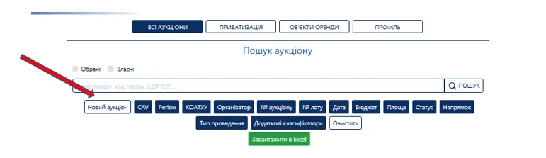- Зайдіть у вкладку «Аукціони» та натисніть снопку «Новий аукціон»
