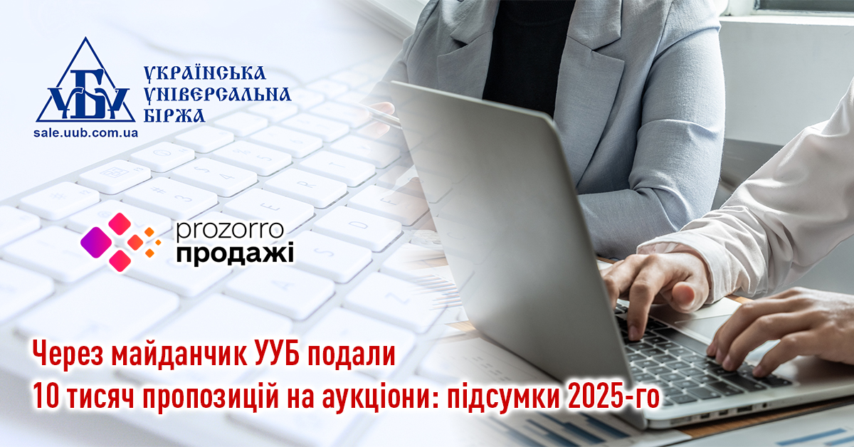 На січень 2026 року у системі Прозорро.Продажі уже оголошень майже 5,5 тис. е-аукціонів. Традиційно, менеджери майданчика Української універсальної біржі проконсультують...