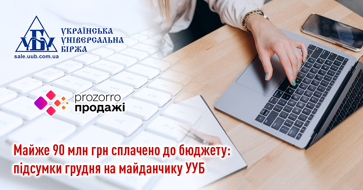 У грудні на Прозорро.Продажі відбулося майже 1 700 електронних аукціонів, за результатами яких до державного та місцевих бюджетів надійшло 2,3 млрд грн.